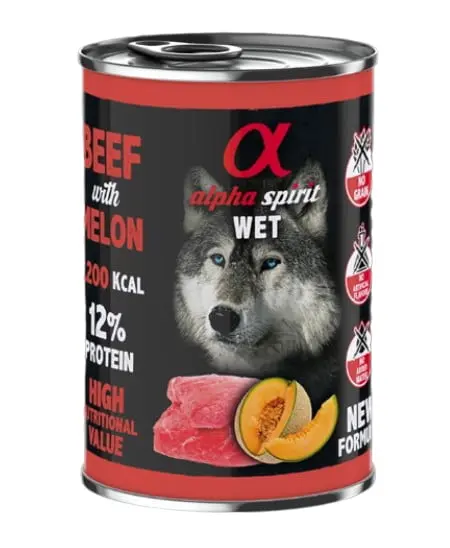 Composición,Ternera 93% (carne, hígado, pulmón, oreja), melón 4%, gelatina, pulpa remolacha molida, especias y minerales.